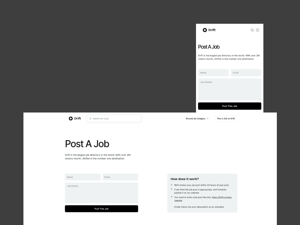 Drift was conceived as a groundbreaking platform to redefine the job search experience, providing users with a seamless and intuitive interface to navigate their careers.